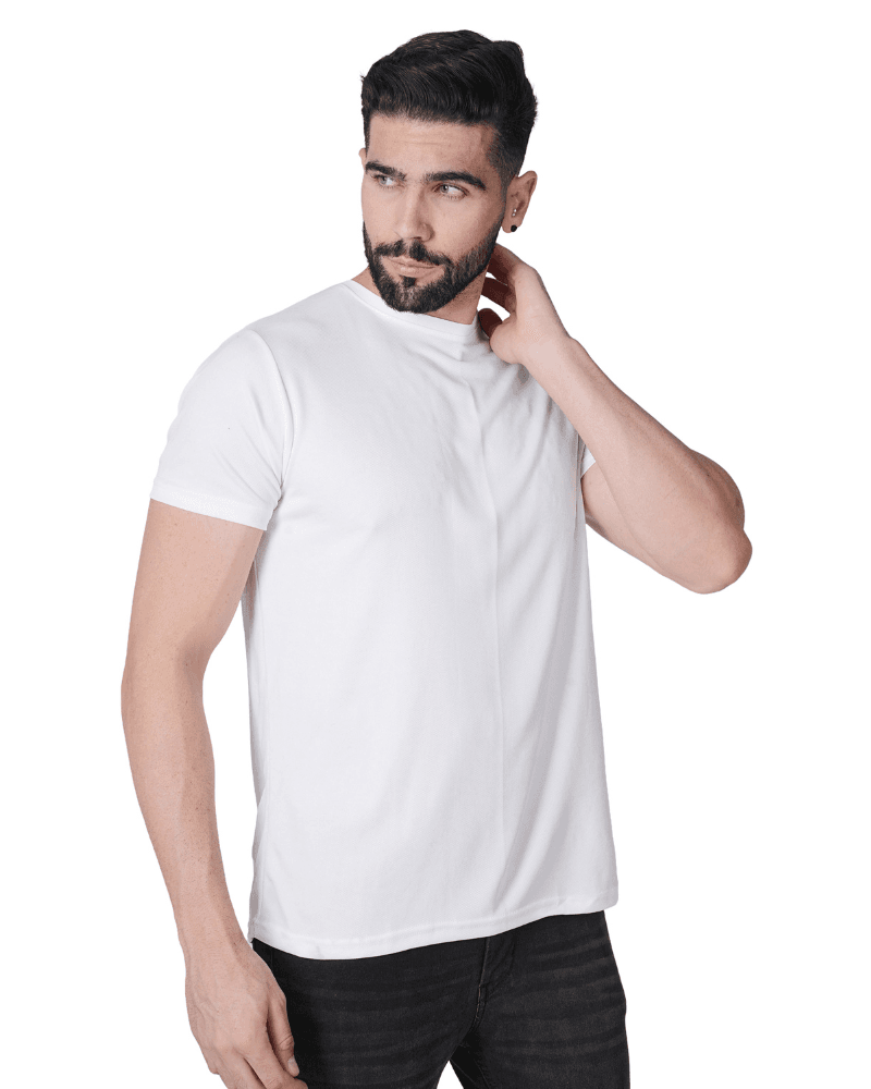 Mens White Colour Round Neck T-Shirt